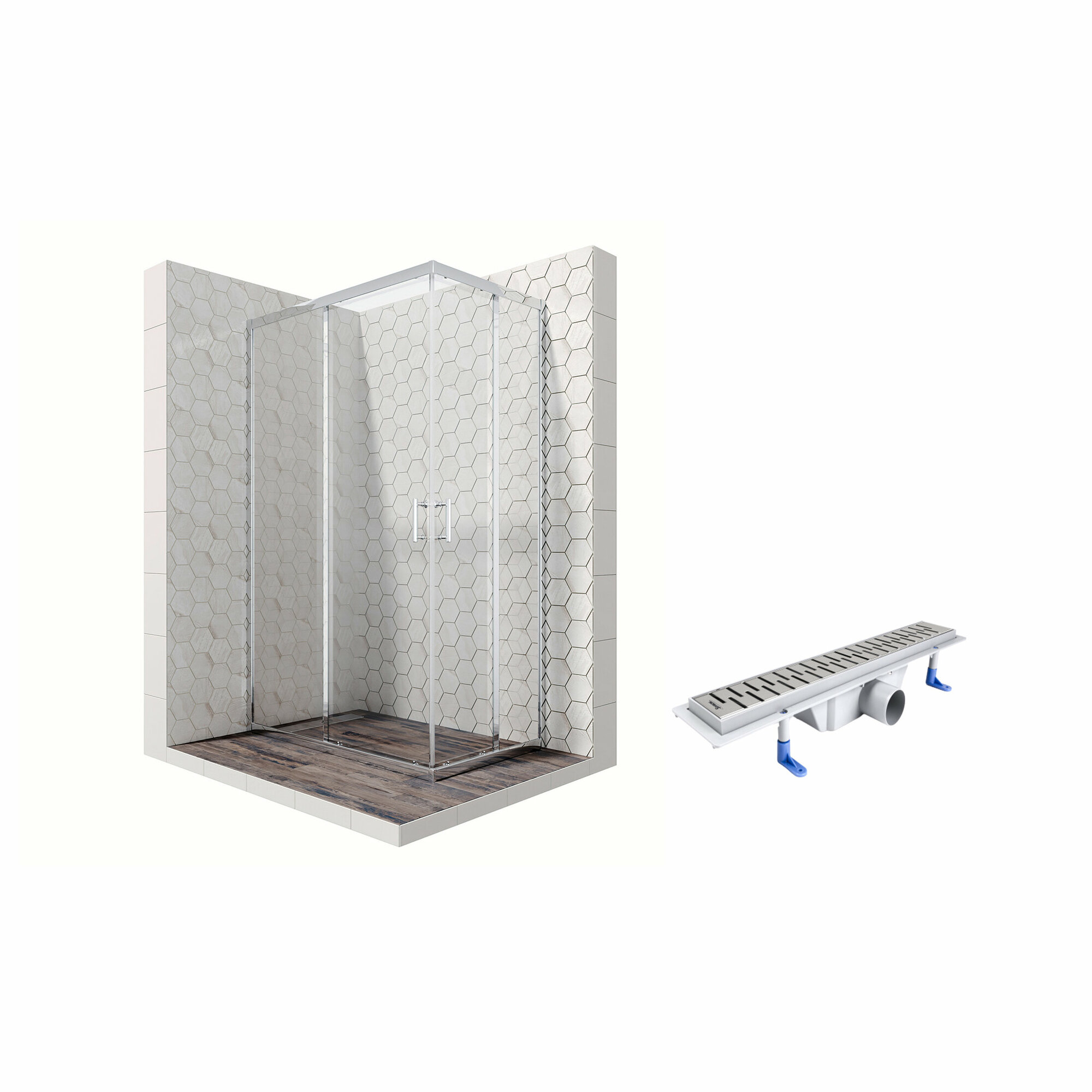 Душевой уголок 120х80 с трапом и раздвижными дверями Ambassador Kingston 14011101-ST5: душевое ограждение из стекла 6 мм, профиль хром информация: