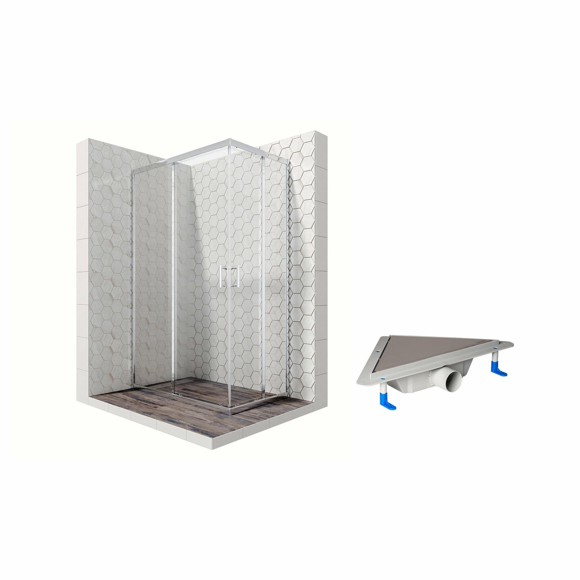 Душевой уголок 120х80 с трапом и раздвижными дверями Ambassador Kingston 14011101-ST15: душевое ограждение из стекла 6 мм, профиль хром информация: