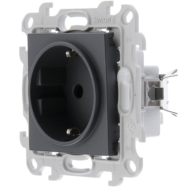Розетка встраиваемый Simon 24 Push&Go с заземлением со шторкой цвет графит