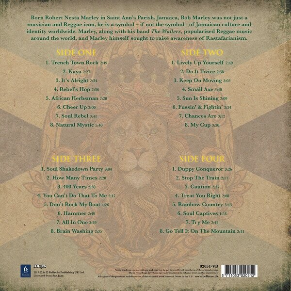| Треклист | A1. Trenchtown Rock A2. Kaya A3. It's All Right A4. Rebel Hop A5. African Herbsman A6. Cheer Up A7. Soul Rebel A8. Natural Mystic B1. Lively Up Yourself B2. Do It Twice B3. Keep On Moving B4. Small Axe B5. Sun Is Shining B6. Fussin' & Fightin' B7. Chances Are B8. My Cup C1. Soul Shake Down Party C2. How Many Times C3. 400 Years C4. You Can't Do That To Me C5. Don't Rock My Boat C6. Hammer C7. All In One C8. Brain Washing D1. Duppy Conqueror D2. Stop The Train D3. Caution D4. Treat You Right D5. Rainbow Country Club D6. Soul Captives D7. Try Me D8. Go Tell It On The Mountain |