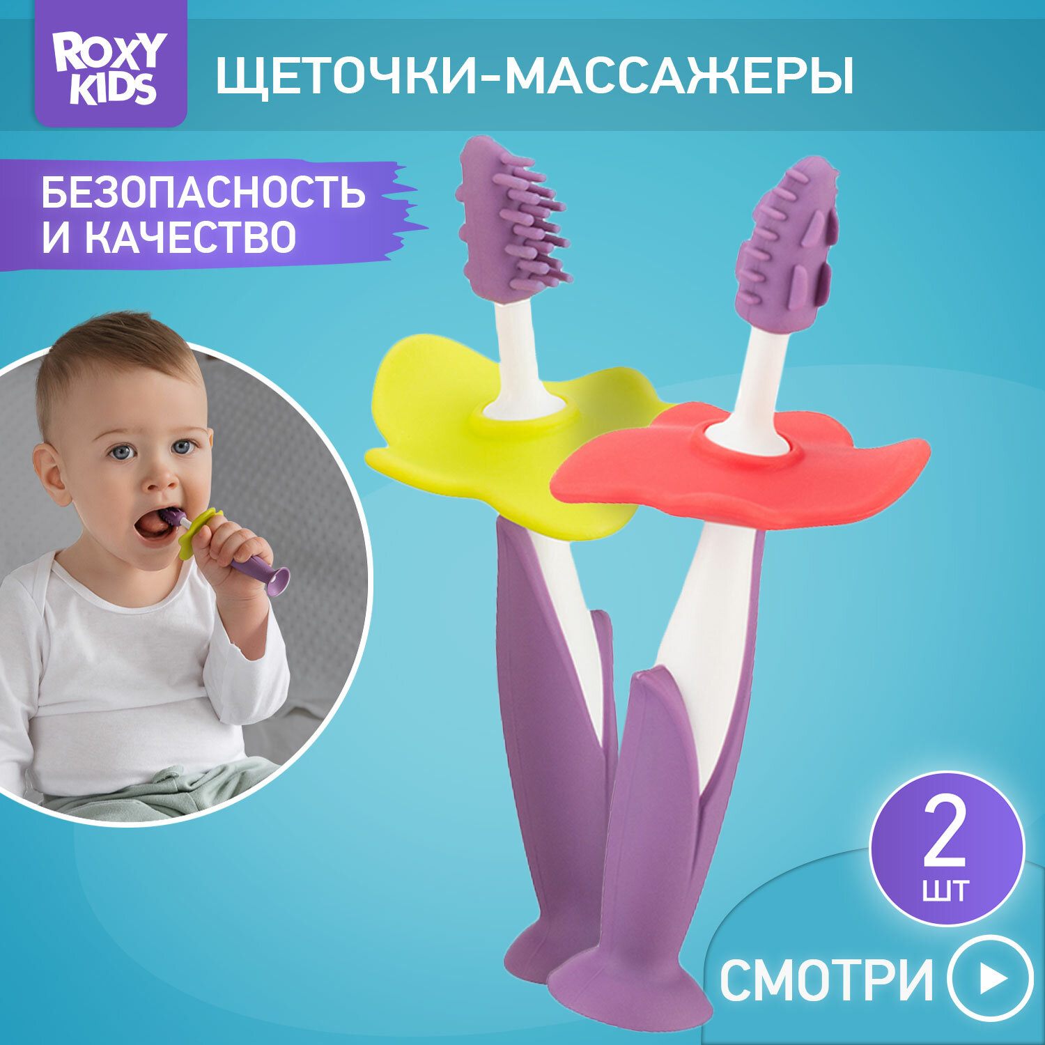 ROXY-KIDS Щетки детские зубные массажер для десен FLOWER от ROXY-KIDS 2 шт, цвет фиолетовый 349 ₽