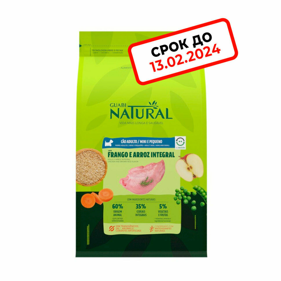 Guabi Natural Dog корм для взрослых собак мелких пород цыпленок и коричневый рис 1 кг