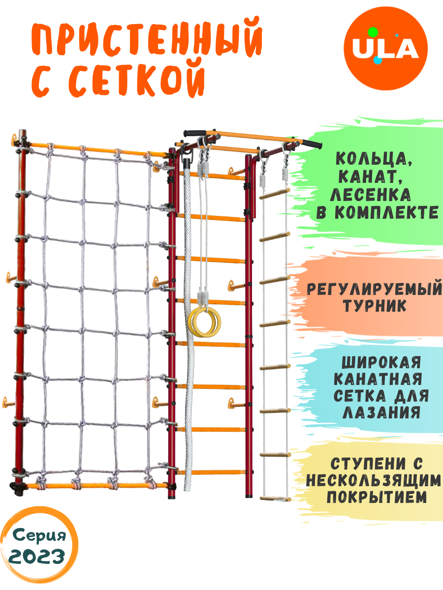 10 цен на Шведская стенка «Пристенная с сеткой для лазания», цвет Красно-желтый