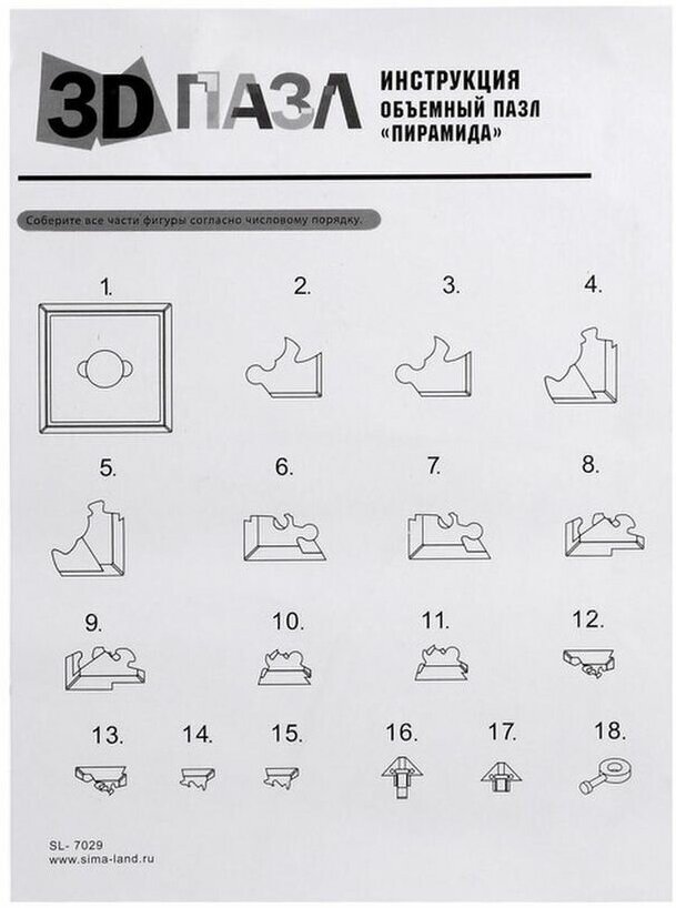 ZABIAKA Пазл 3D кристаллический «Пирамида», 18 деталей, микс информация: