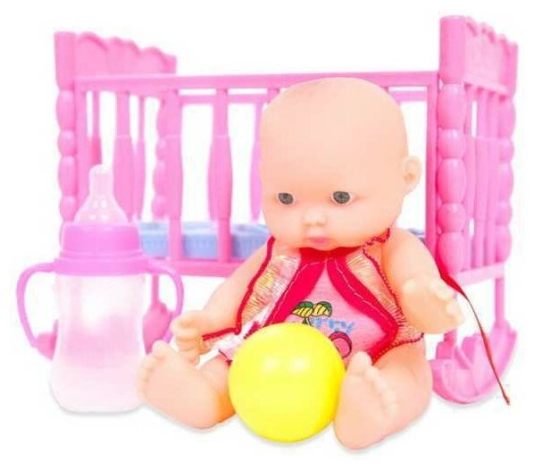 Пупс "Мой малыш", в наборе с кроваткой (пупс, кроватка, мячик, бутылочка молока), в пакете информация: