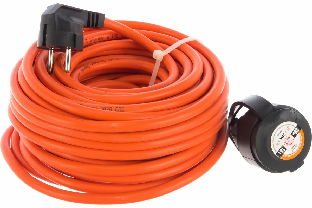 Удлинитель электрический силовой, 20м., 1 роз., КГ 3*2.5мм, 16 А, тип УХЗ-16, Россия // Сибртех, арт. 95896
