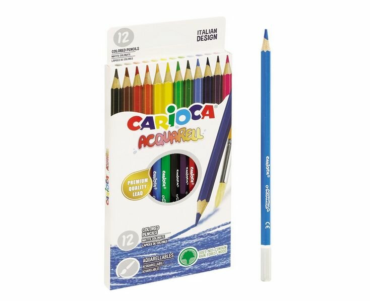 Карандаши акварельные 12 цветов Carioca "Acquarell", шестигранные, деревянные, мягкий грифель 3,3 мм, картонная упаковка