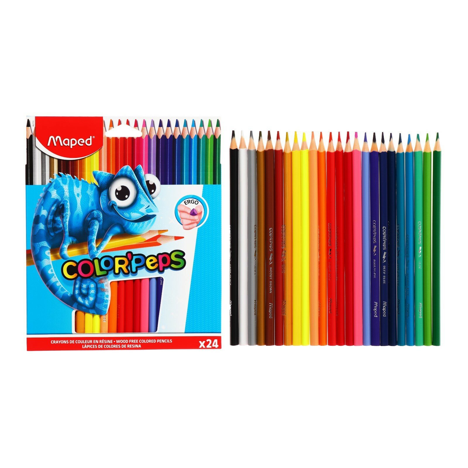 Карандаши 24 цвета, Maped Color Peps Oops, пластиковые, с ластиком, европодвес