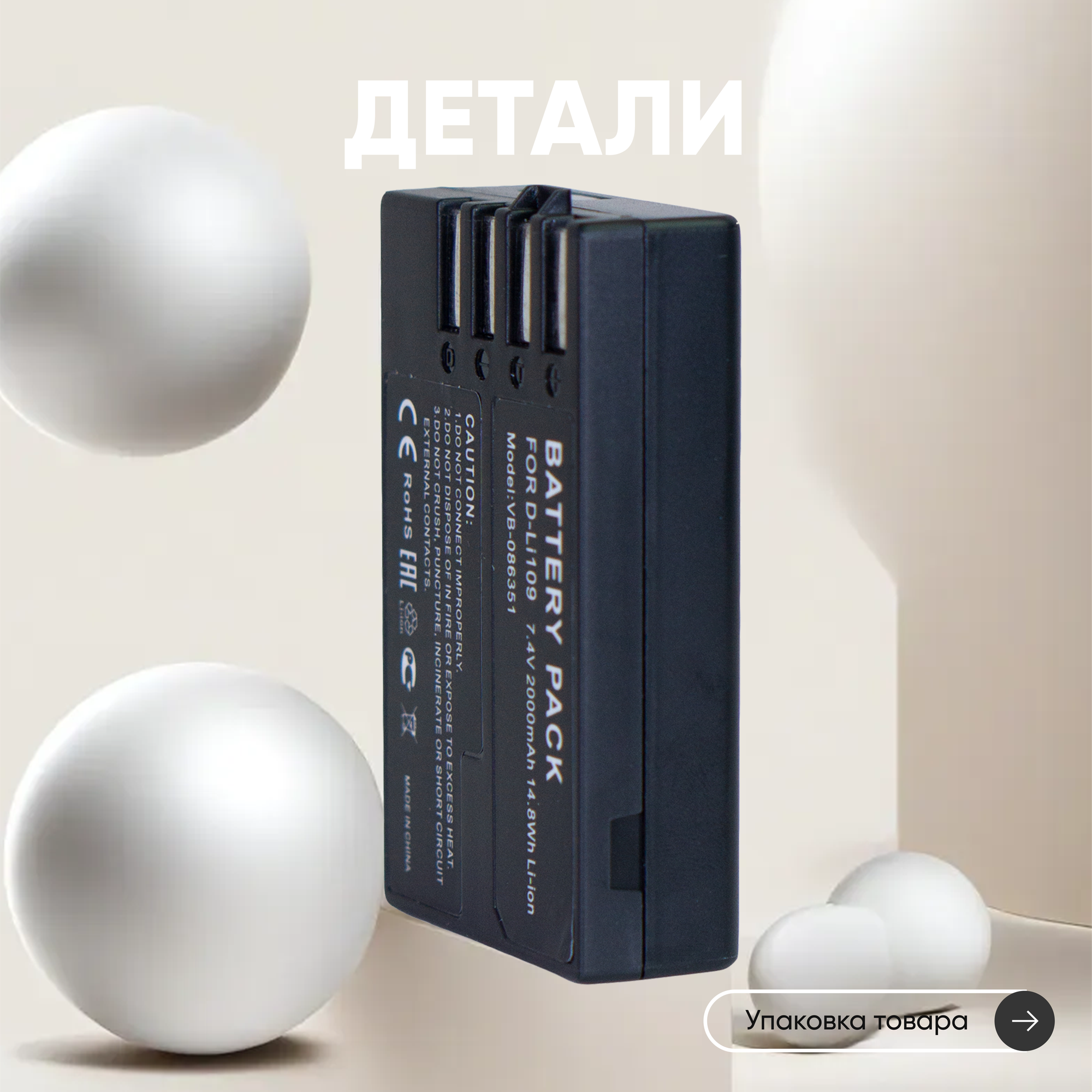 Аккумулятор (АКБ, аккумуляторная батарея) D-LI109 для фотоаппарата Pentax K-R, K-2, K2, K-S1, KS1, K-S2, 7.4В, 2000мАч, Li-Ion информация: