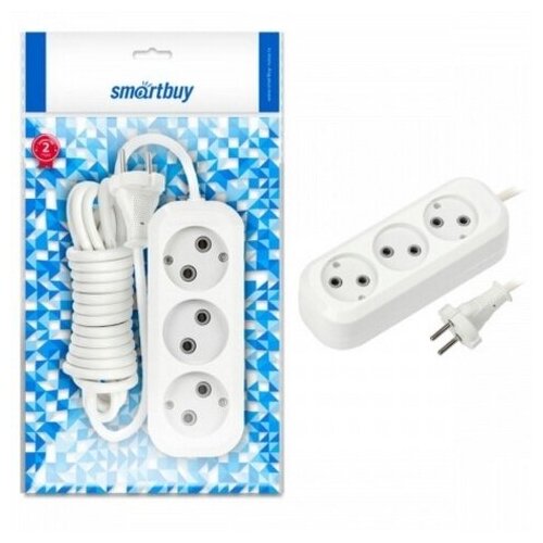 Удлинитель SmartBuy SBE-10-3-02-N, 3 розетки, 2 м, б/з, 10А / 2200 Вт