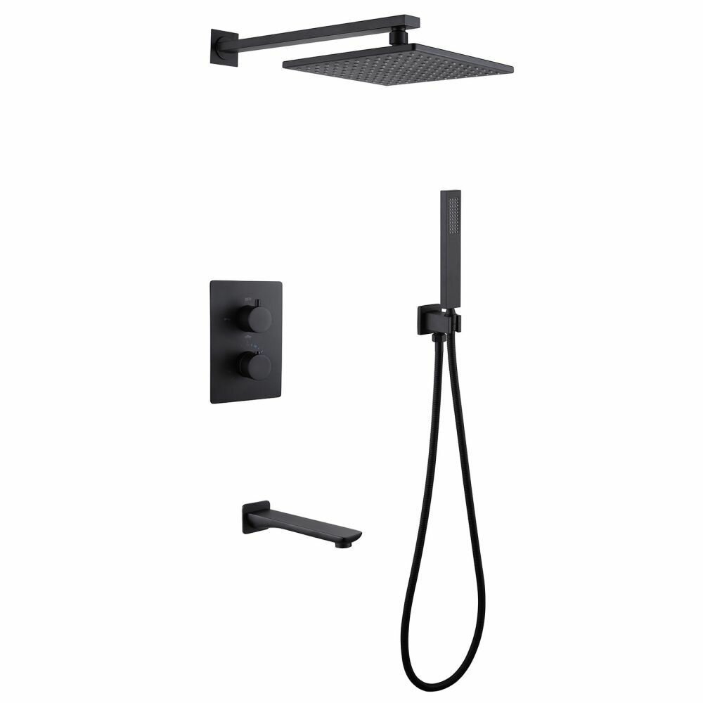 10 цен на Душевая система ABBER Weiss Insel AF8050B скрытого монтажа с изливом, термостат, черная матовая