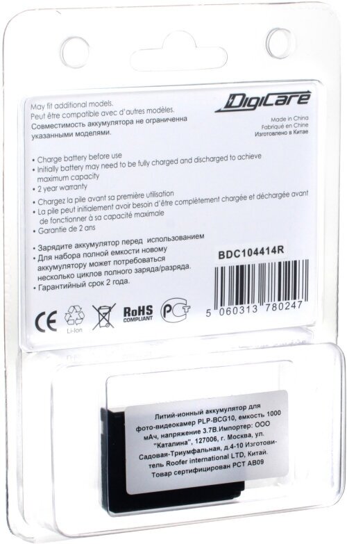 Аккумулятор DigiCare PLP-BLG10/DMW-BLG10, для Panasonic GF6/GX7/LX100 информация: