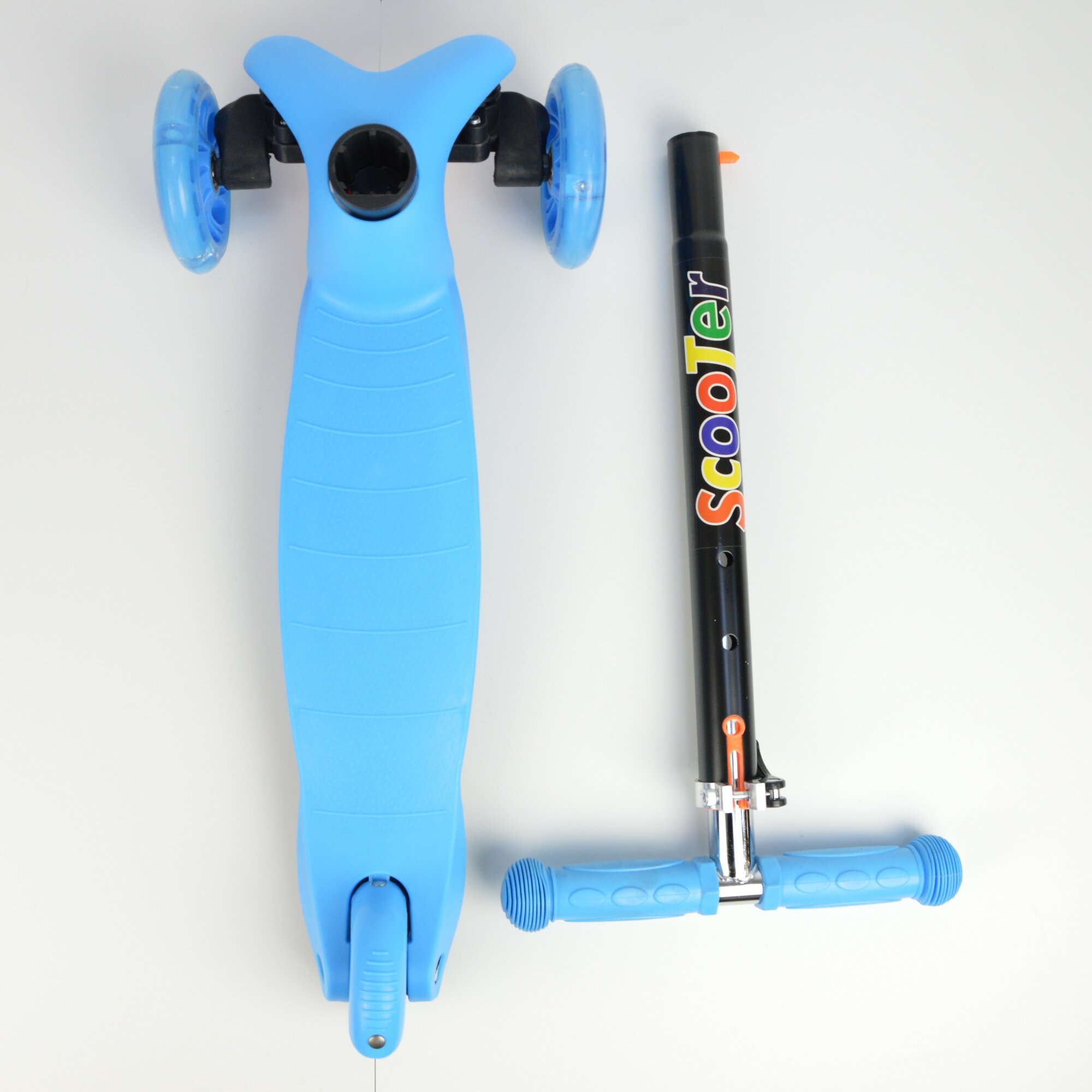 Самокат 3-х колесный, светящиеся колеса, передние 110 мм, заднее 76 мм, синий информация: