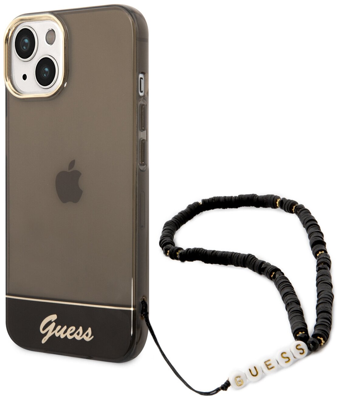 Guess Чехол Guess Translucent w Electoplated camera Hard +hand Strap для iPhone 14, черный