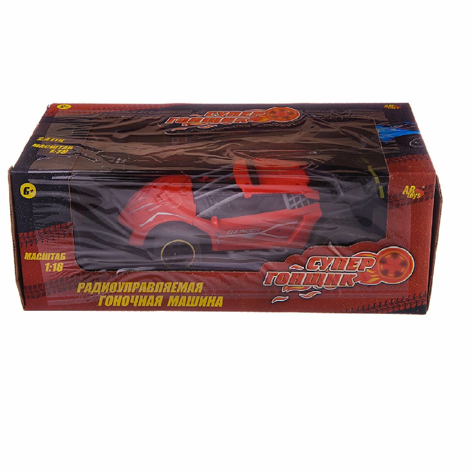 Машина р/у гоночная, 1:18, 2,4Ггц, резиновые колеса, аккумуляторный блок, красная - ABtoys [C-00476R]