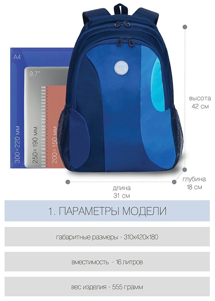 Рюкзак GRIZZLY RD-142-3 море, 31х42х18 информация: