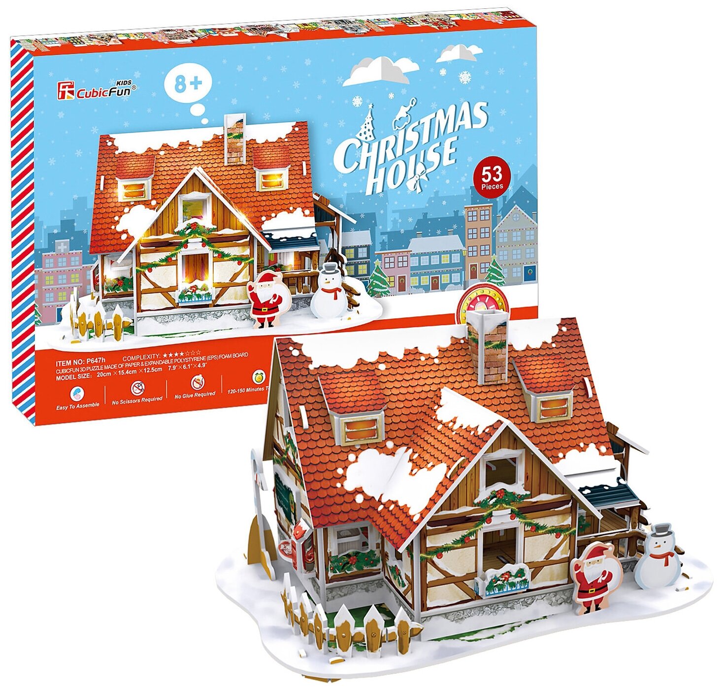3D пазл CubicFun Рождественский домик с LED-подсветкой, 53 детали