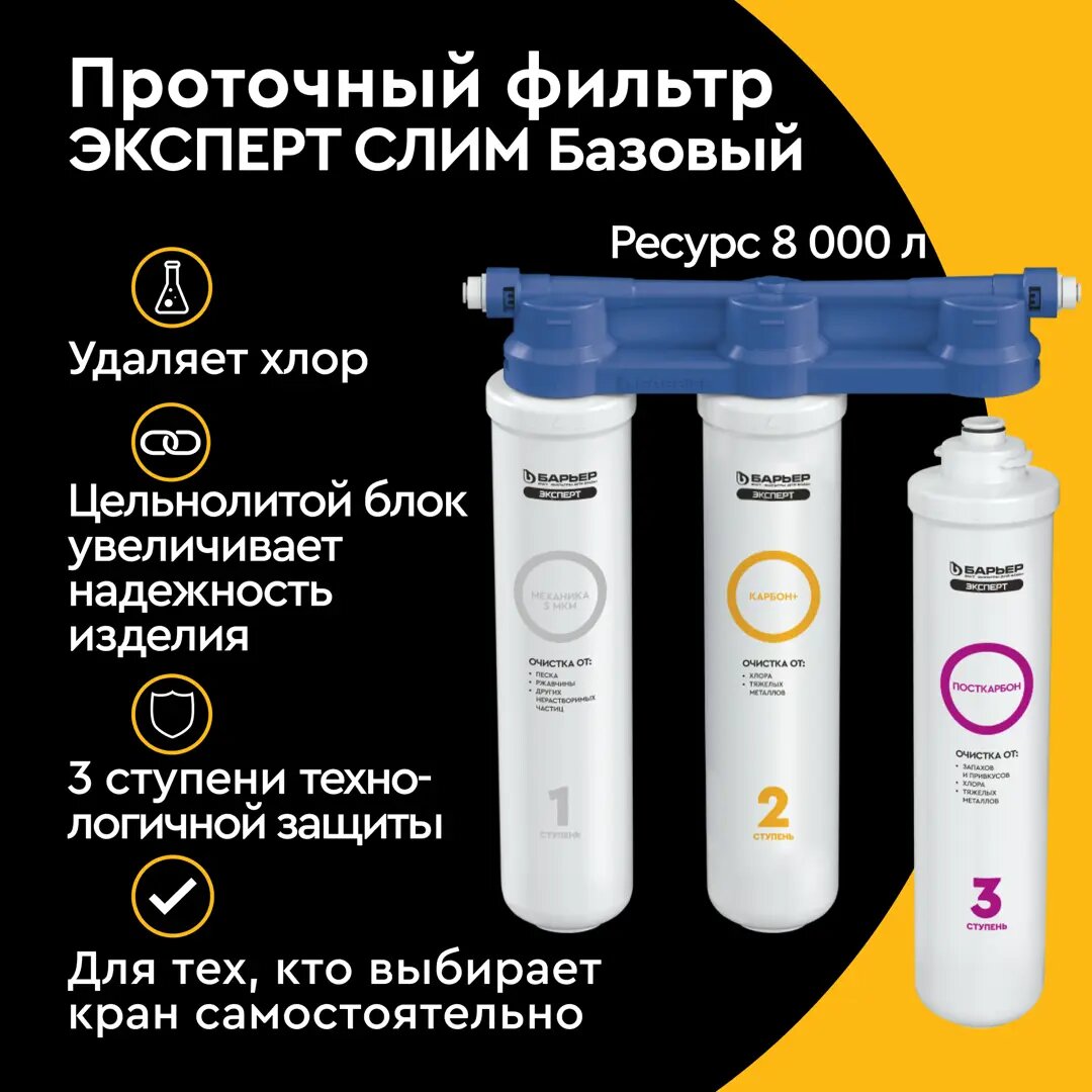 10 цен на Фильтр под мойку Барьер Эксперт Slim для мягкой воды 3 ступени без крана