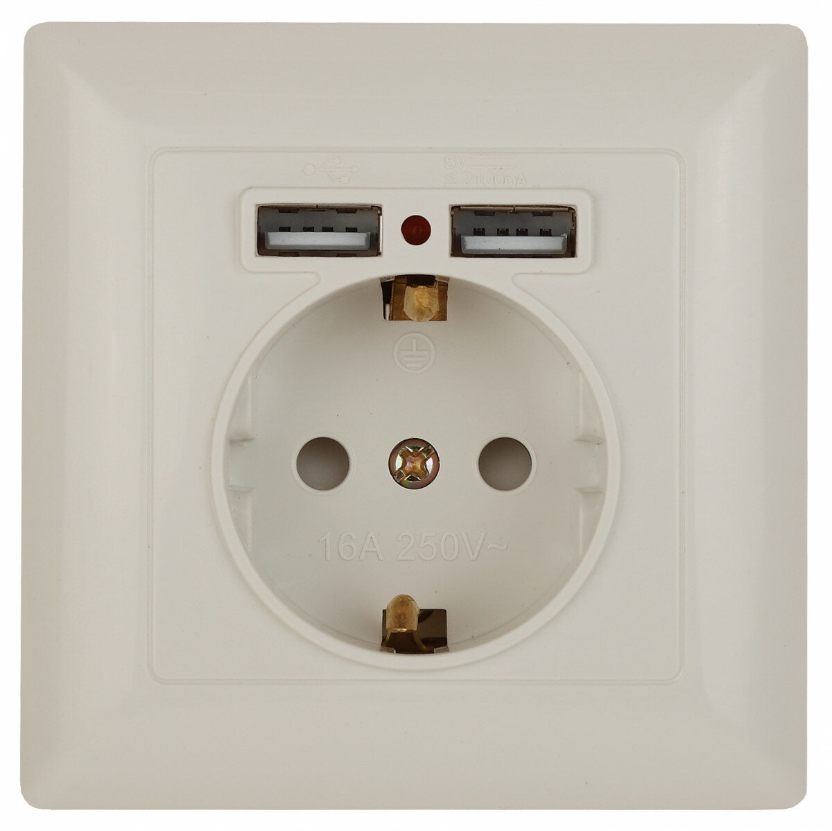 Розетка Intro Solo 4-410-02 с заземлением P+E Schuko со шторками, 16А-250В + 2хUSB, IP20, СУ, слоновая кость арт. Б0053714 (1 шт.)
