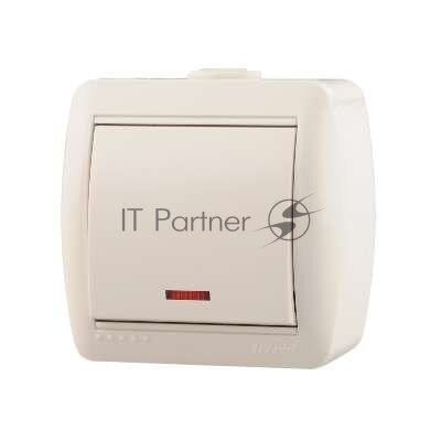 Выключатель 1-кл. ОП Ната 10А IP20 с подсветкой крем., LEZARD 710-0300-111 (1 шт.)