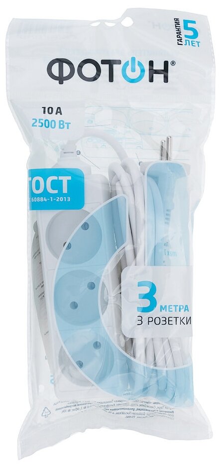 Сетевой удлинитель "фотон" 10-33, 3 м, 3 розетки, 10 А, белый информация: