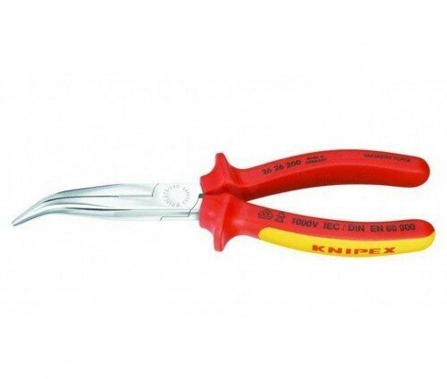 Плоские круглогубцы 200 мм с режущими кромками VDE KNIPEX, KN-2626200, загнутые