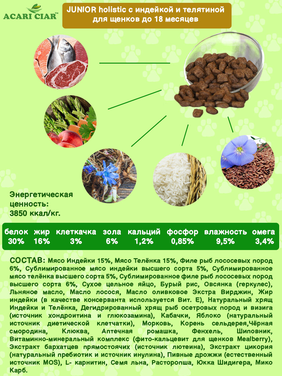Сухой корм для щенков с 6 до 18 месяцев ACARI CIAR HOLISTIC JUNIOR Медиум гранулы 15 кг 7 900 ₽