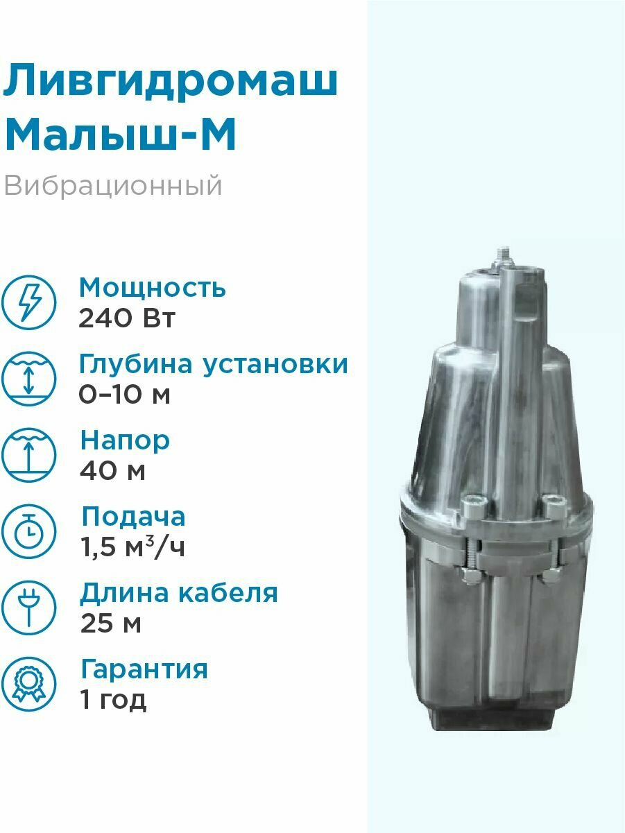 Погружной вибрационный насос "Малыш-М", верхний забор, шнур питания 25 м, Джилекс 1517 информация: