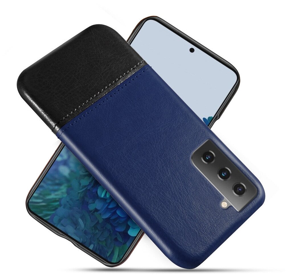 Чехол панель-накладка MyPads для Samsung Galaxy S21 (SM-G991) обтянутый качественной импортной кожей двухцветный дизайнерский с элегантной прошивкой сине-черный
