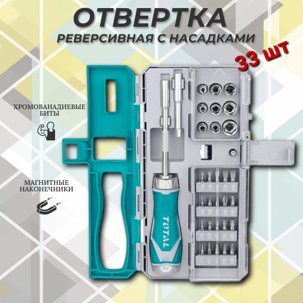 Отвертка реверсивная с битами TOTAL 33 шт