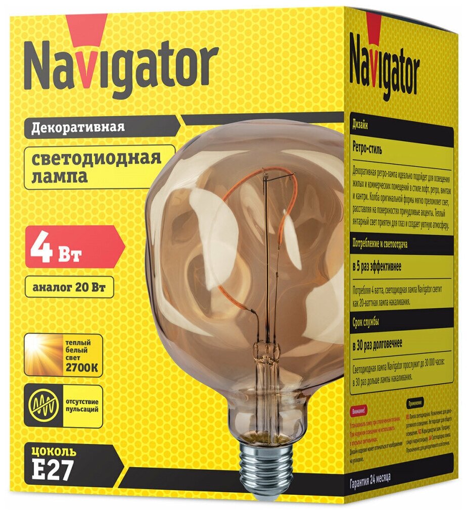 Navigator Лампа 14 499 NLL-F-G125ST-4-230-2.7K-E27-BE 14499 информация:
