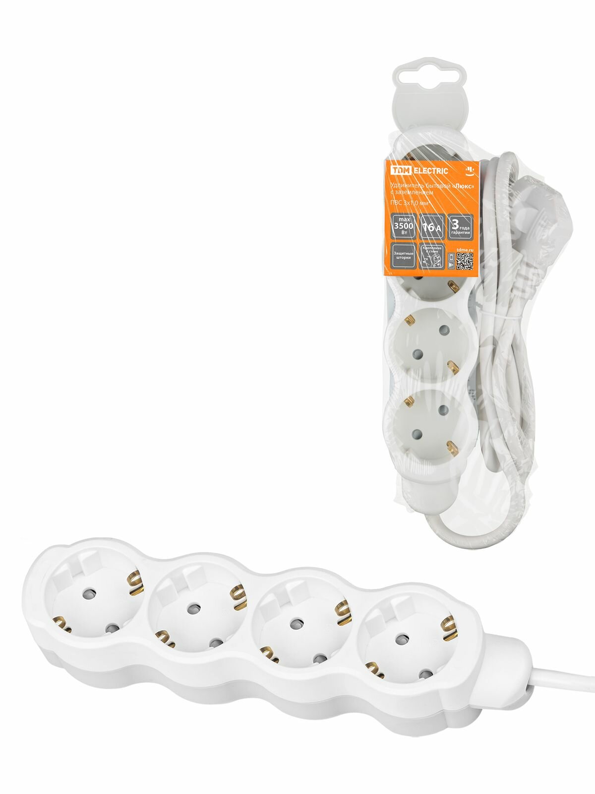 Удлинитель бытовой TDM Люкс SQ1303-0236 (белый, 4 розетки, 16A, 3м) информация: