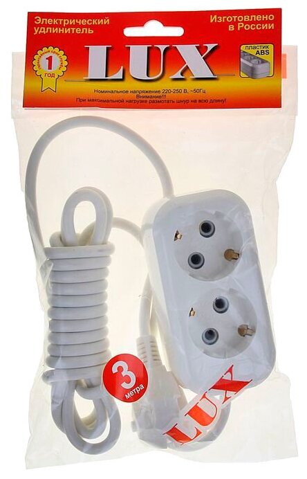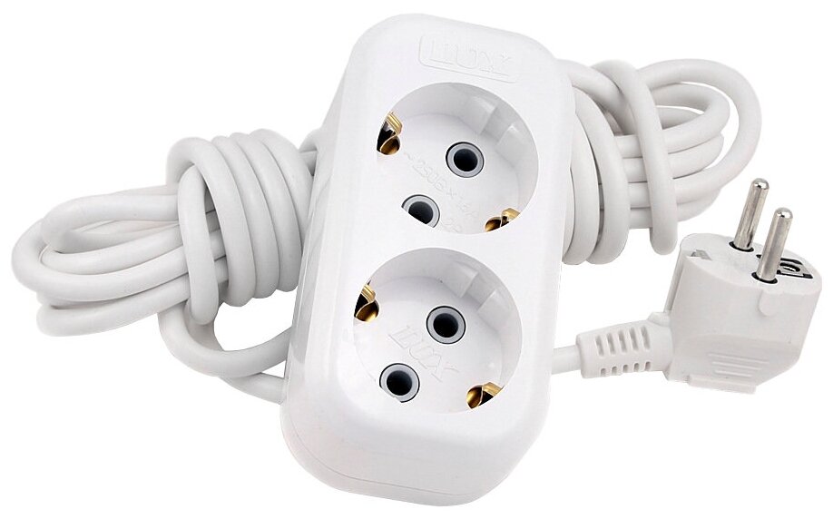 Удлинитель LUX У2-Е-03 двухместный с заземлением, 250 В 16 А, 3 м (4606400414544)