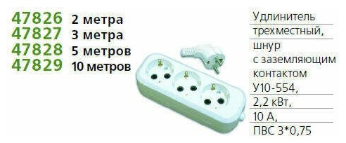 10 цен на Удлинитель 3х2м У10-554 с заземлением ПВС 3х0.75. 554-02 Универсал