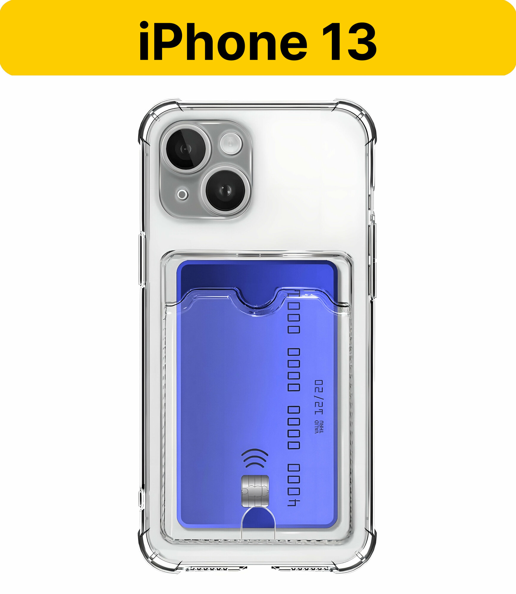 10 цен на ADV GROUP / Прозрачный чехол на iPhone 13 c карманом для карт, противоударный с защитой камеры