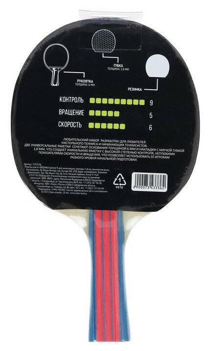 Ракетка для настольного тенниса Control 9, для начинающих, губка 1.8 мм, коническая ручка 445 ₽