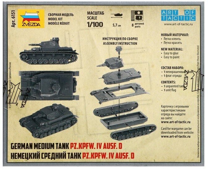 Сборная модель Звезда Немецкий средний танк Pz.Kpfw. IV Ausf. D, 1/100 6151