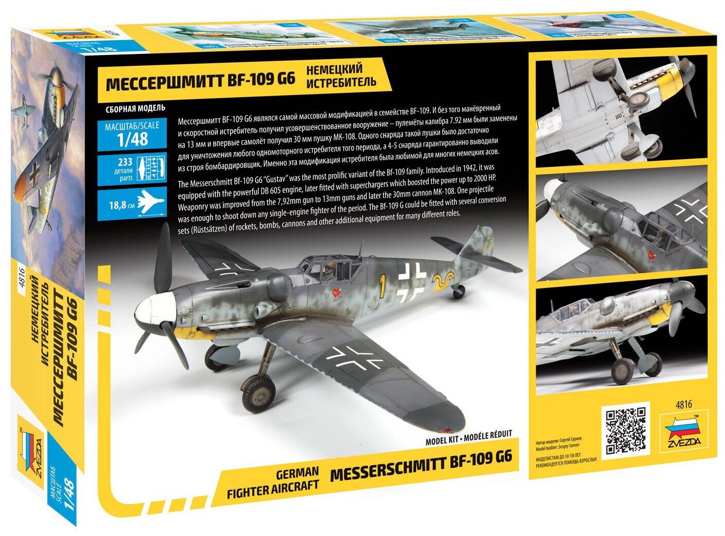 Сборная модель ZVEZDA Немецкий истребитель Мессершмитт Bf-109G6 информация:
