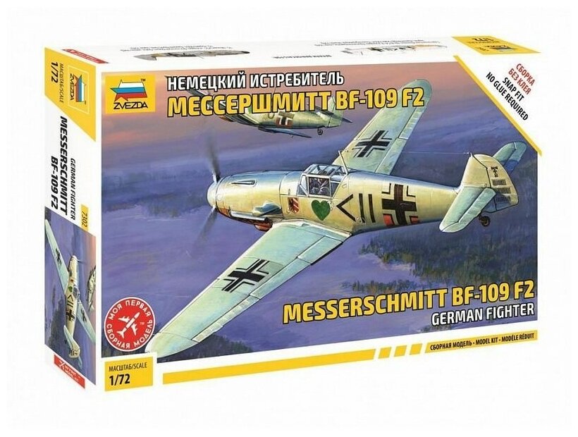 Сборная модель ZVEZDA Немецкий истребитель Мессершмитт Bf-109F2 (сборка без клея), 1/72 информация: