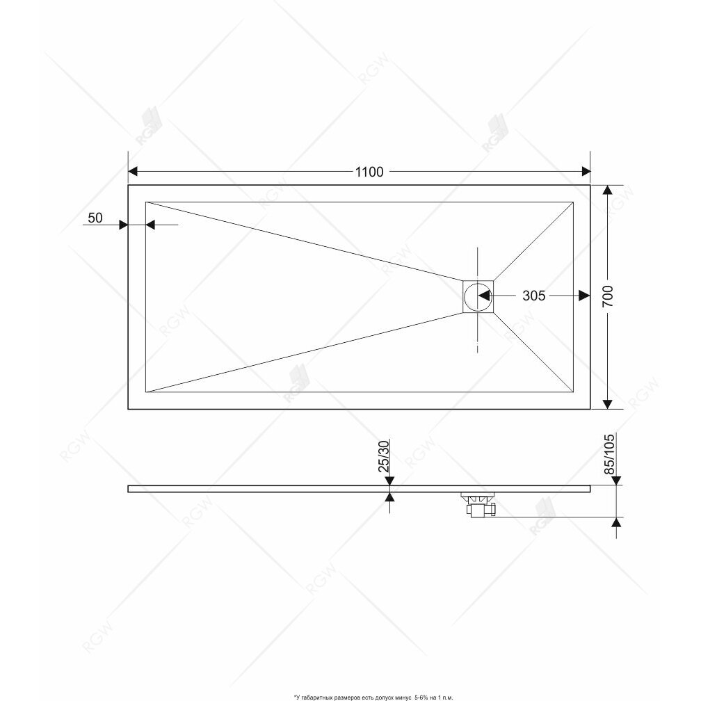 Душевой поддон RGW 70х110х2,5 см ST-0117W Белый, Прямоуг Ø90 Каменный (16152711-01) информация:
