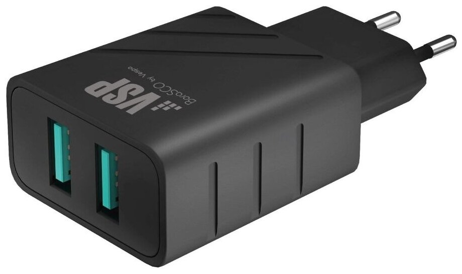 Зарядные устройства BORASCO 2xUSB, 2.4A черное (50177)