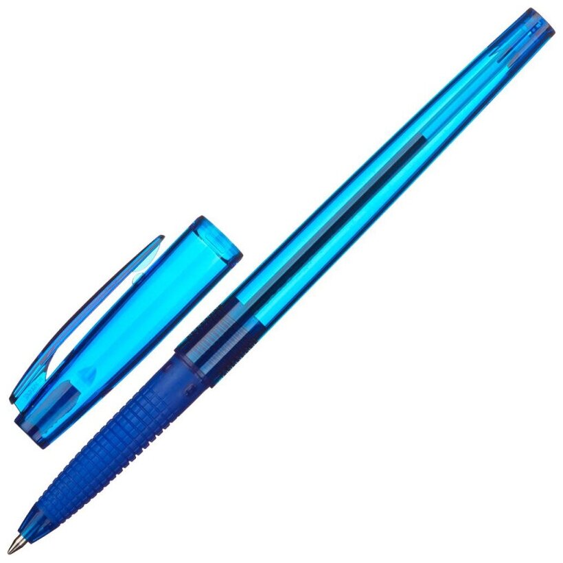 Ручки шариковые синие набор 12 штук тонкие для школы с грипом, линия письма 0,35 мм, Brauberg X-ONE, 143986