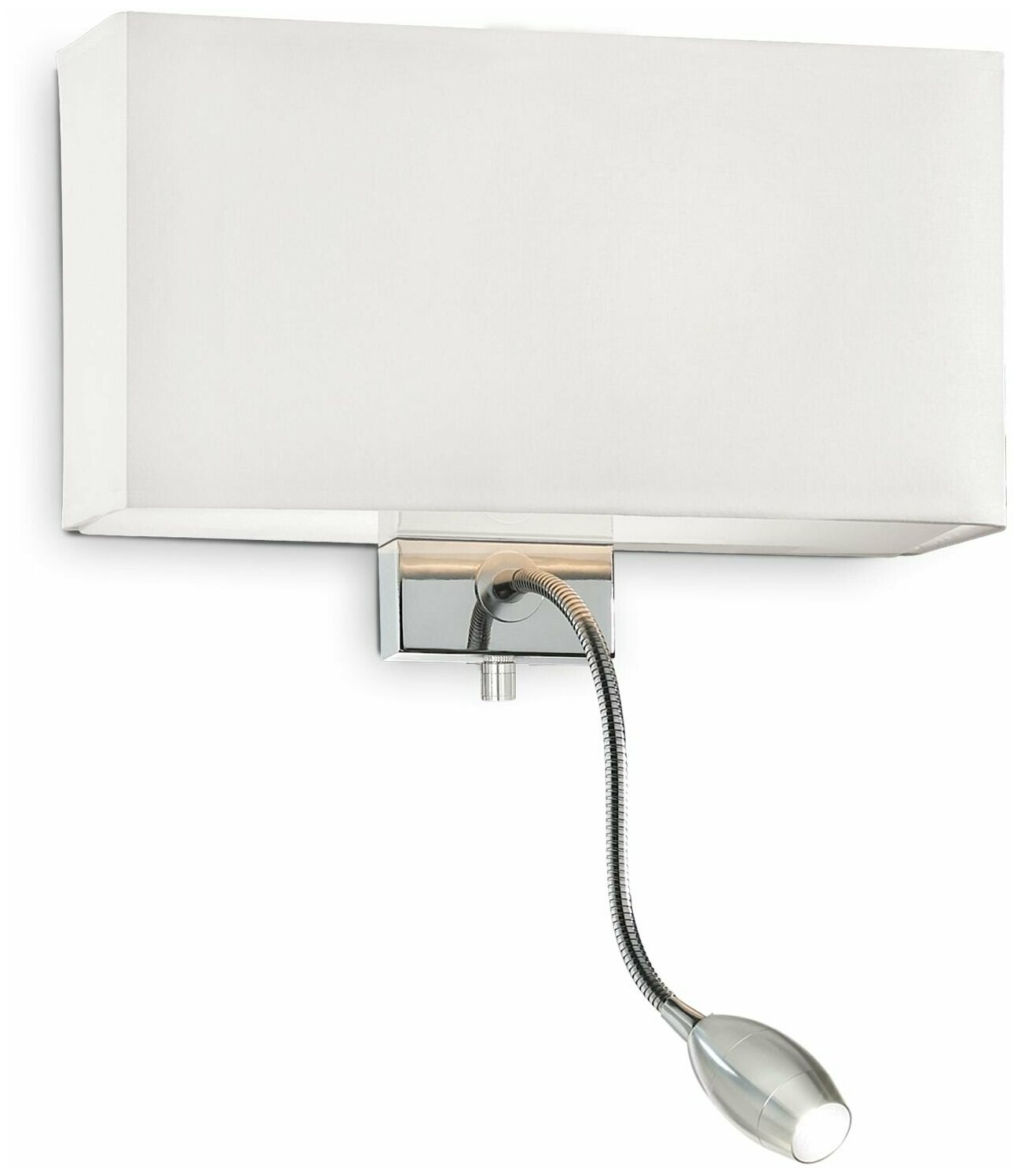 Настенный светильник IDEAL LUX Настенная бра Ideal Lux Hotel AP2 макс.1х60Вт/1.5Вт 55Лм 3000К IP20 Е27/LED 230В Металл/ПВХ/Ткань 035949, E27, 60 Вт, белый/хром