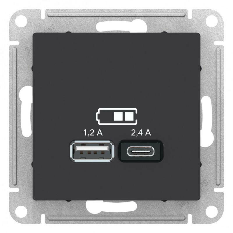 Розетка USB A+С, AtlasDesign Schneider Electric карбон ATN001039 информация: