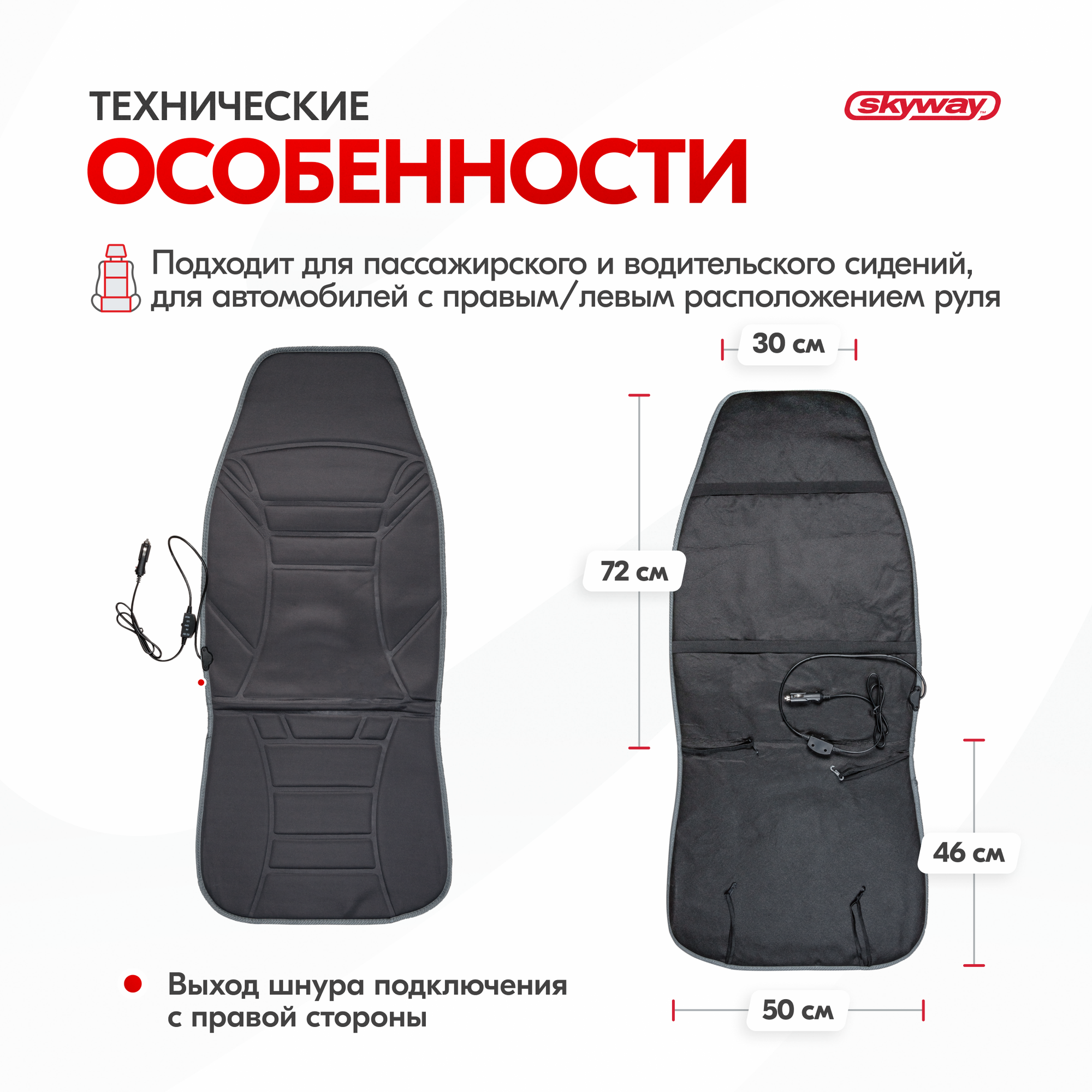 Накидка на сиденье с подогревом 12V с терморегулятором черная, SKYWAY S02201002 (1 шт.) 2 630 ₽