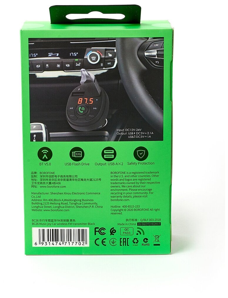 Автомобильный FM-трансмиттер Borofone, модулятор BC26