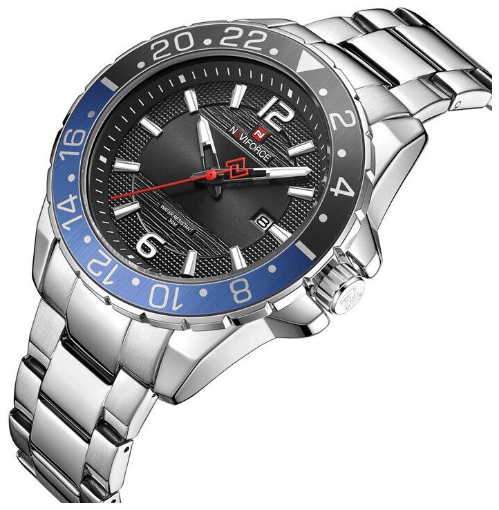 Naviforce Мужские NF9208 кварцевые, круглые, с секундомером и подсветкой, серебристые/черные