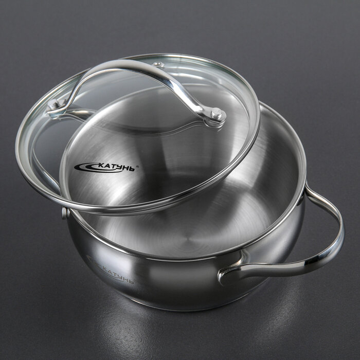 Кастрюля Катунь "Медея", 1,6 л, d 16 см, стеклянная крышка, капсульное дно, цвет хромированный 2 451 ₽