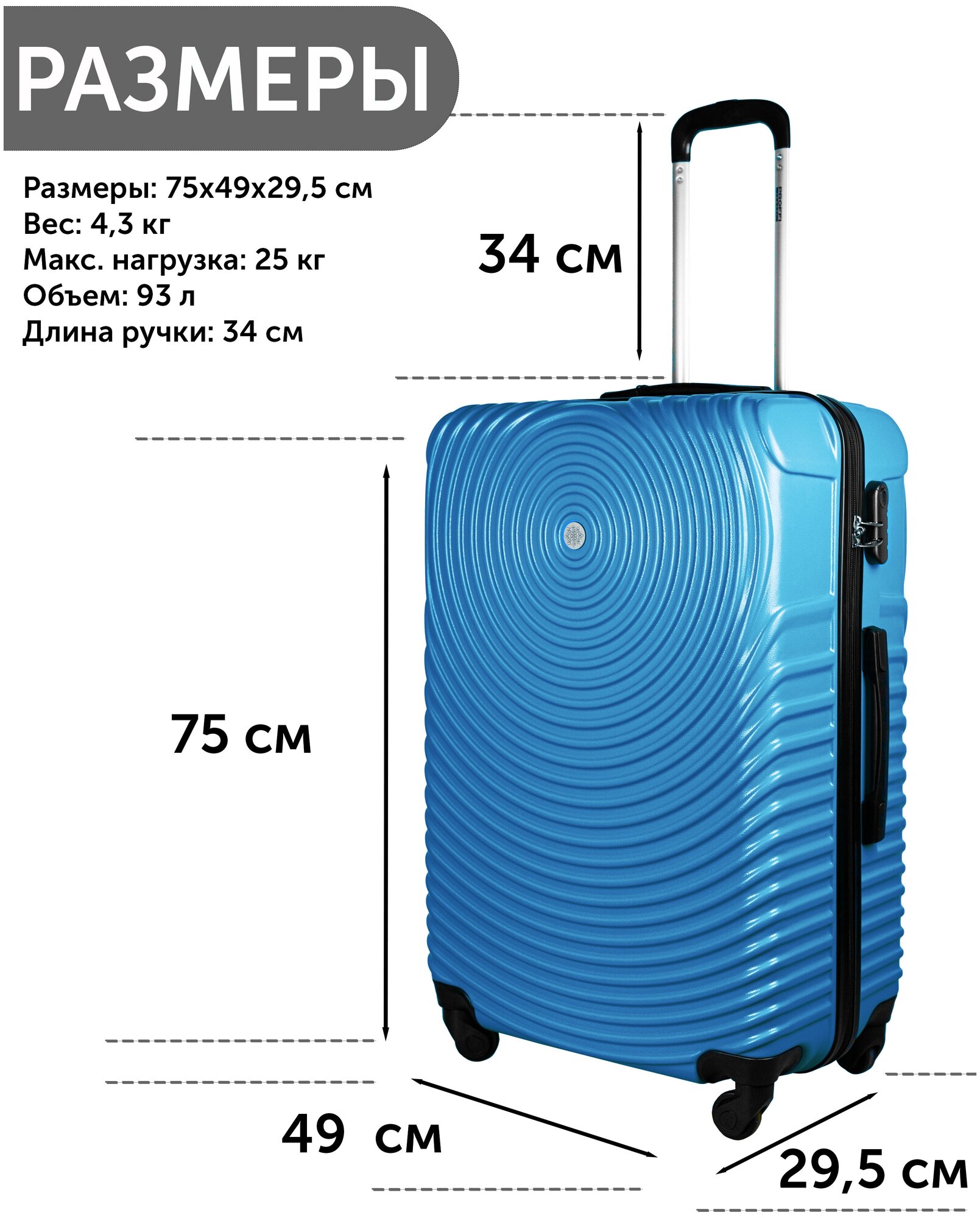 Чемодан на колесах TOUR SPACE большой, L, PROFFI TRAVEL PH11080, атлантический синий информация: