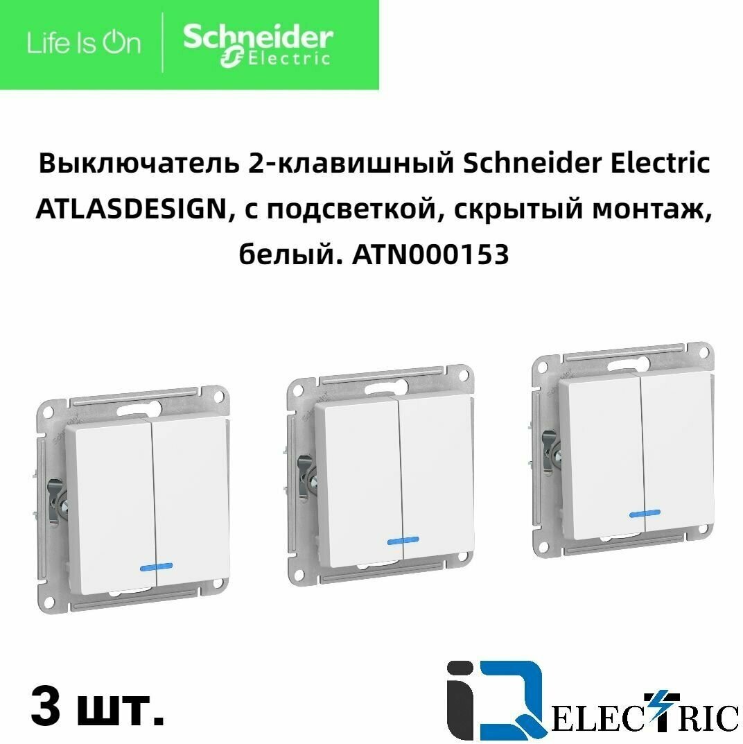 Выключатель двухклавишный Schneider Electric Atlas Design с подсветкой, белый ATN000153 3 шт информация: